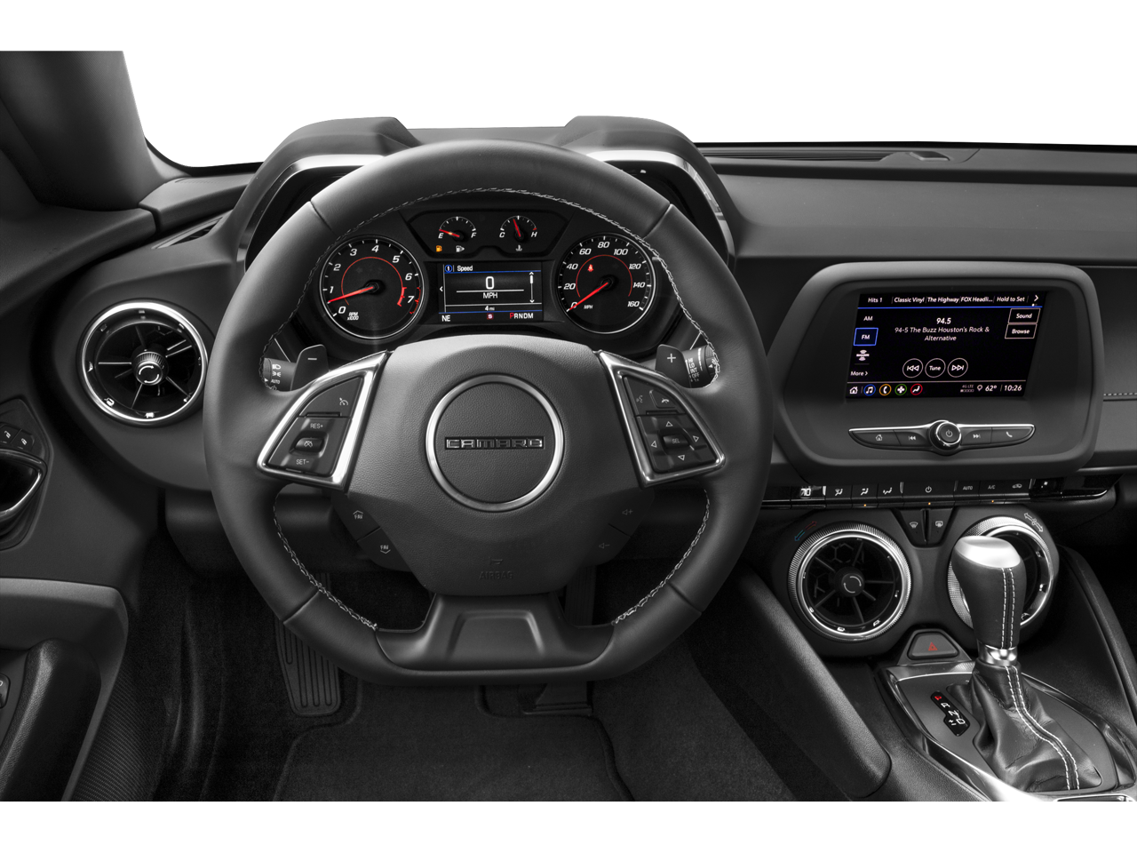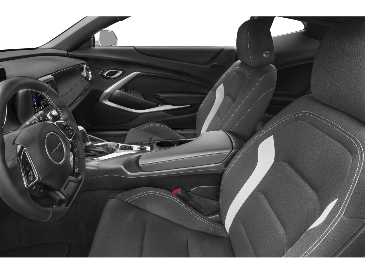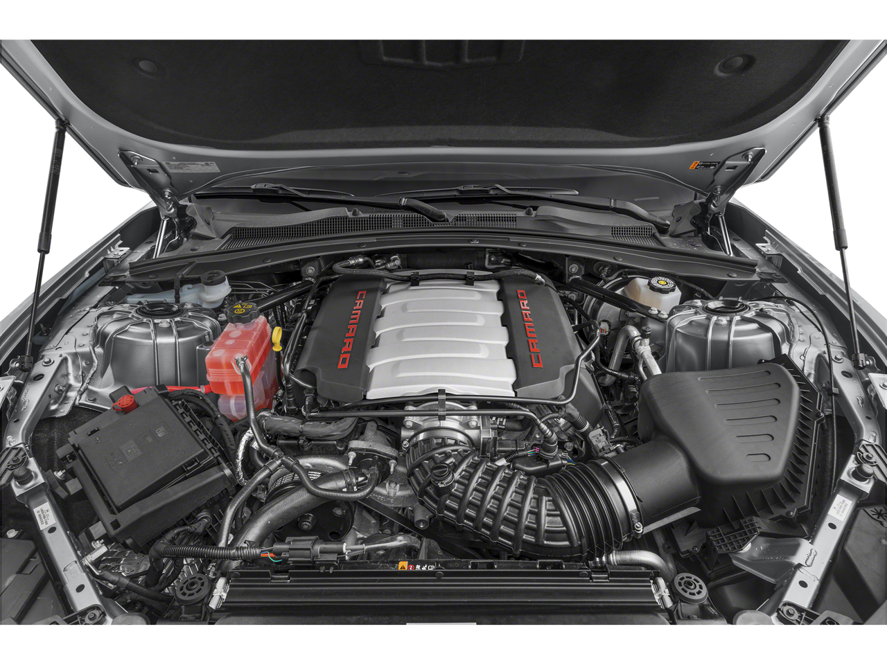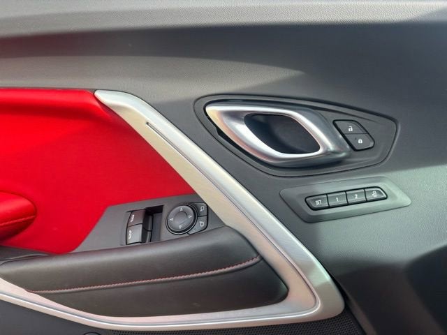 Step inside the Camaro's cabin, and you'll be greeted by the Adrenaline Red Interior Package, which infuses the space with a bold, sporty flair. Sink into the supportive leather-trimmed seats, which feature heating and ventilation for year-round comfort, and enjoy the premium audio experience delivered by the Bose sound system.