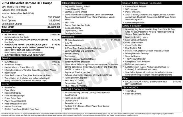 This 2024 Chevrolet Camaro 3LT is a true driver's delight, blending exhilarating performance, refined style, and an impressive array of features. Experience the thrill for yourself by scheduling a test drive today. We're confident you'll be captivated by this exceptional sports car.